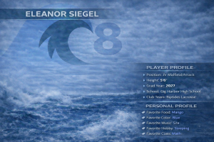 1. Clara Munkers2. Lizzy Kolokithas3. Megan Rockness4. Lily Manning5. Evelyn Reguindin6. Katie Waida7. Ashlyn Delgado8. Eleanor Siegel10. Olivia Van Someren12. Andi Heater16. Anya Helgerson17. Maren Garlick18. Sydney Elton19. Joelle Newton20. Sydney Schultz21. Hazel Elton22. Violette Phillips S23. Maddie Harding24. Taylor Riley25. Kelsea Gardner26. Dreigha Holland S28. Eva Gummow29. Emma Huggins30. Ari Huggins32. Dolly Phillips36. Sawer Barrett S #8NameEleanor SiegelGrade11SchoolGHHSLeaguesJunior Varsity, WSLAX Peninsula DivisionSeasons2025, 2026